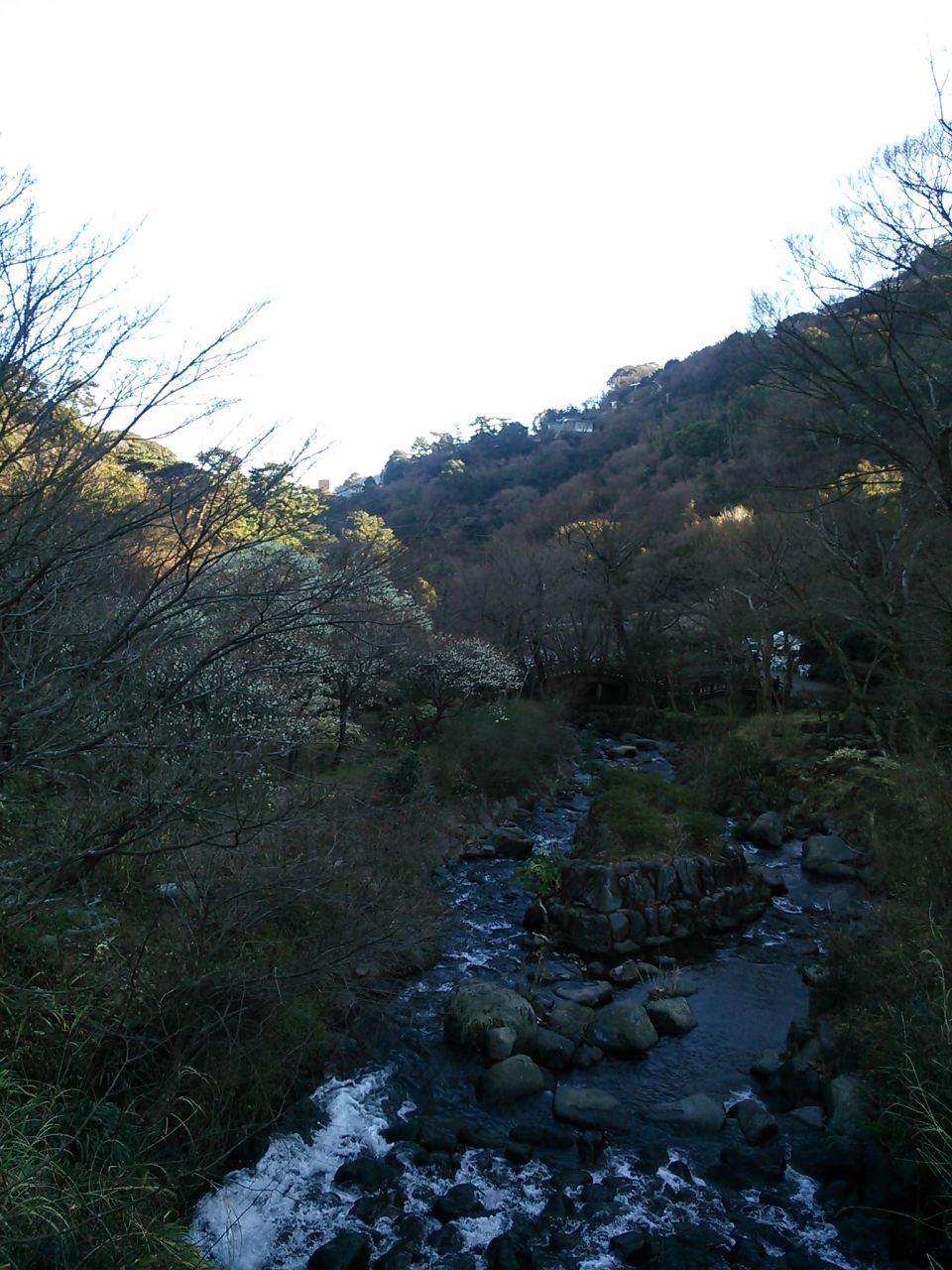 丁度園の中央を縦に流れており、周りの景観ともぴったりで裏に入れる滝があったりと整備されている川なのですが、実際は熱海の市街地を通り抜け海へそそぐ普通の川を利用してこの梅園があるようですね。