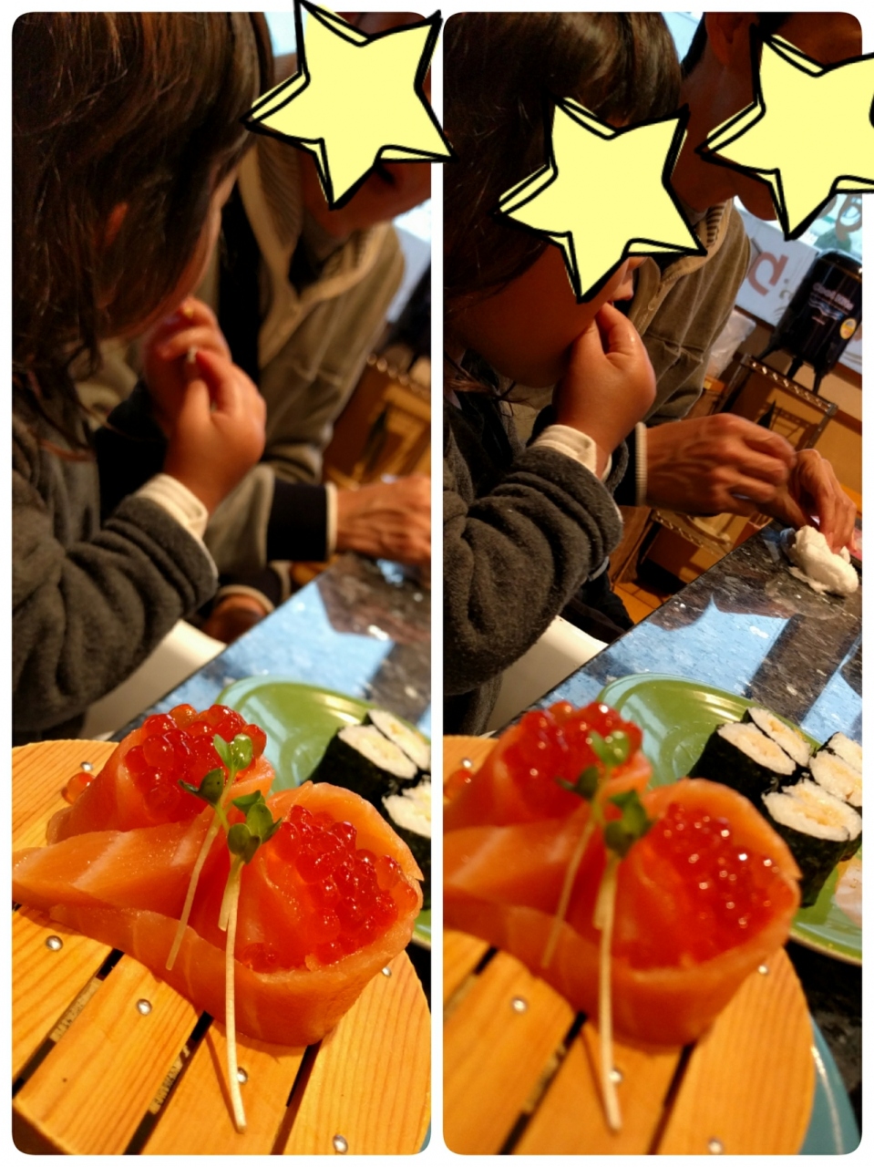 いくらと酢飯をサーモンで巻いたものも、見た目も美しく、美味でした。