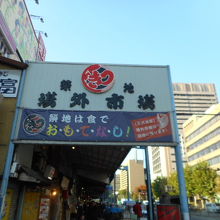 築地場外市場の狭い通路に、食料品を扱う店舗や立ち食いの食事処が並んでいます。人気のラーメン店もこの通りにあり、早朝から築地の仲買人や観光客が行き交い、最近は、特に、築地は観光エリアになり、海外からの観光客が、しかも団体客が多く圧倒されます。