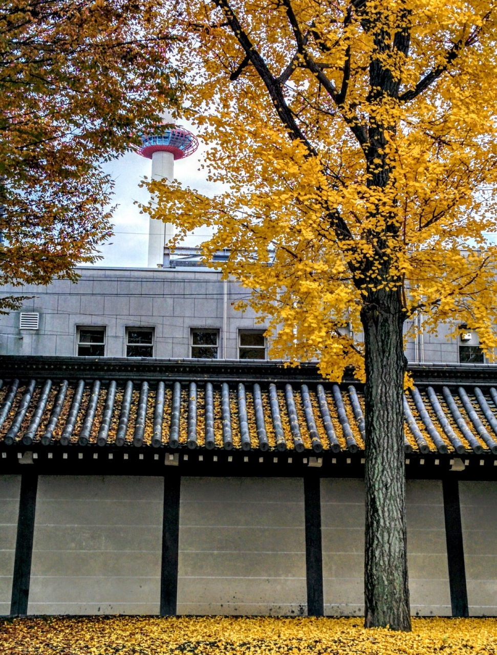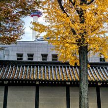 東本願寺に行くと、東本願寺の東側イチョウ並木は黄金色に輝いていました。