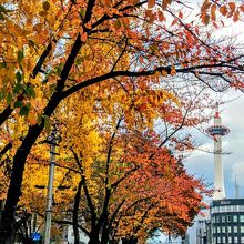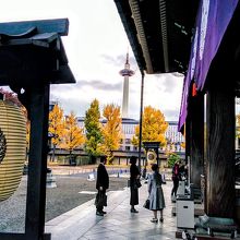 東本願寺東側や境内には、秋の紅葉を見るあめたくさんの観光客や参拝者が訪れ、写真撮影を楽しんでいましたいました。