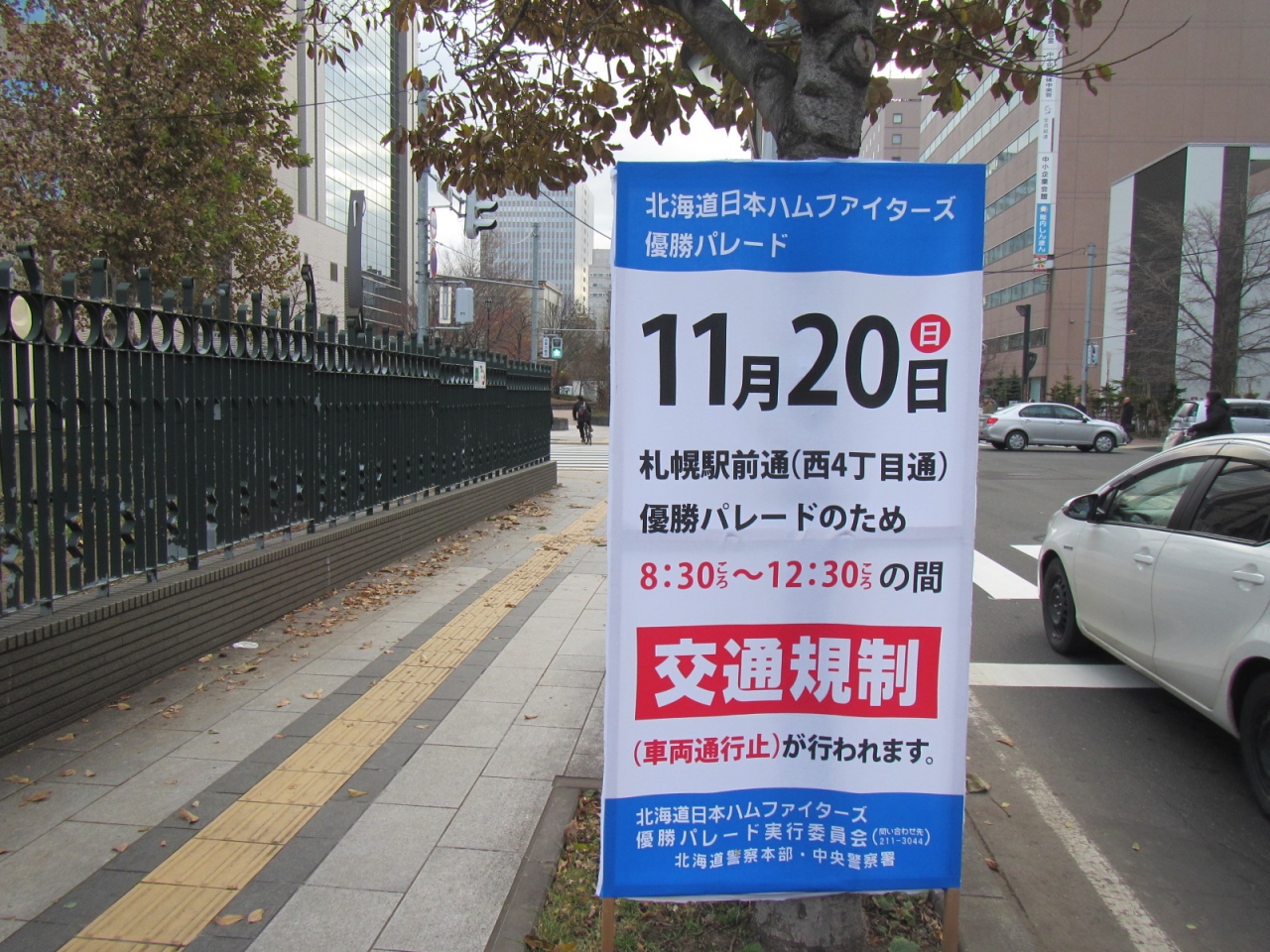 2016年11月20日に日本ハムファイターズの優勝パレードが行われました。