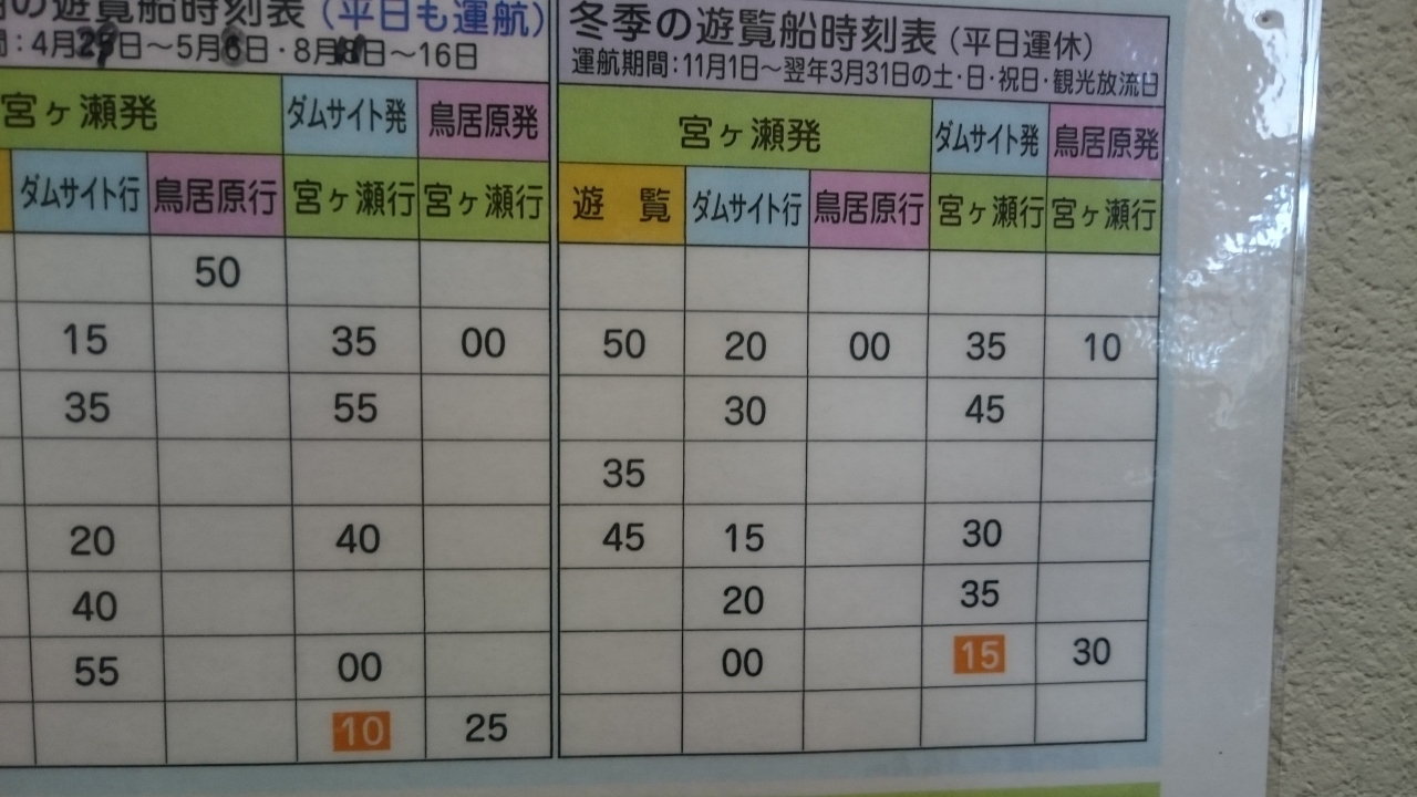 宮ケ瀬湖の3か所を結ぶ路線のほかに、一周30分のコースで宮ケ瀬湖を遊覧するものもあります。船は同じもので合間運行のようです。遊覧コースでしか行かない場所にも見られるのでお勧めです。船内の案内はテープがずっと流れるだけですが、ダムや湖の解説もあって興味深い内容でした。