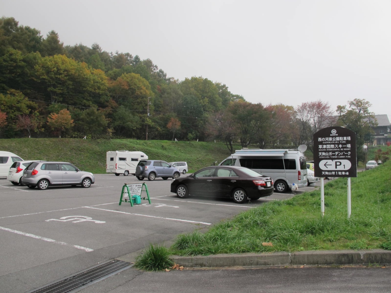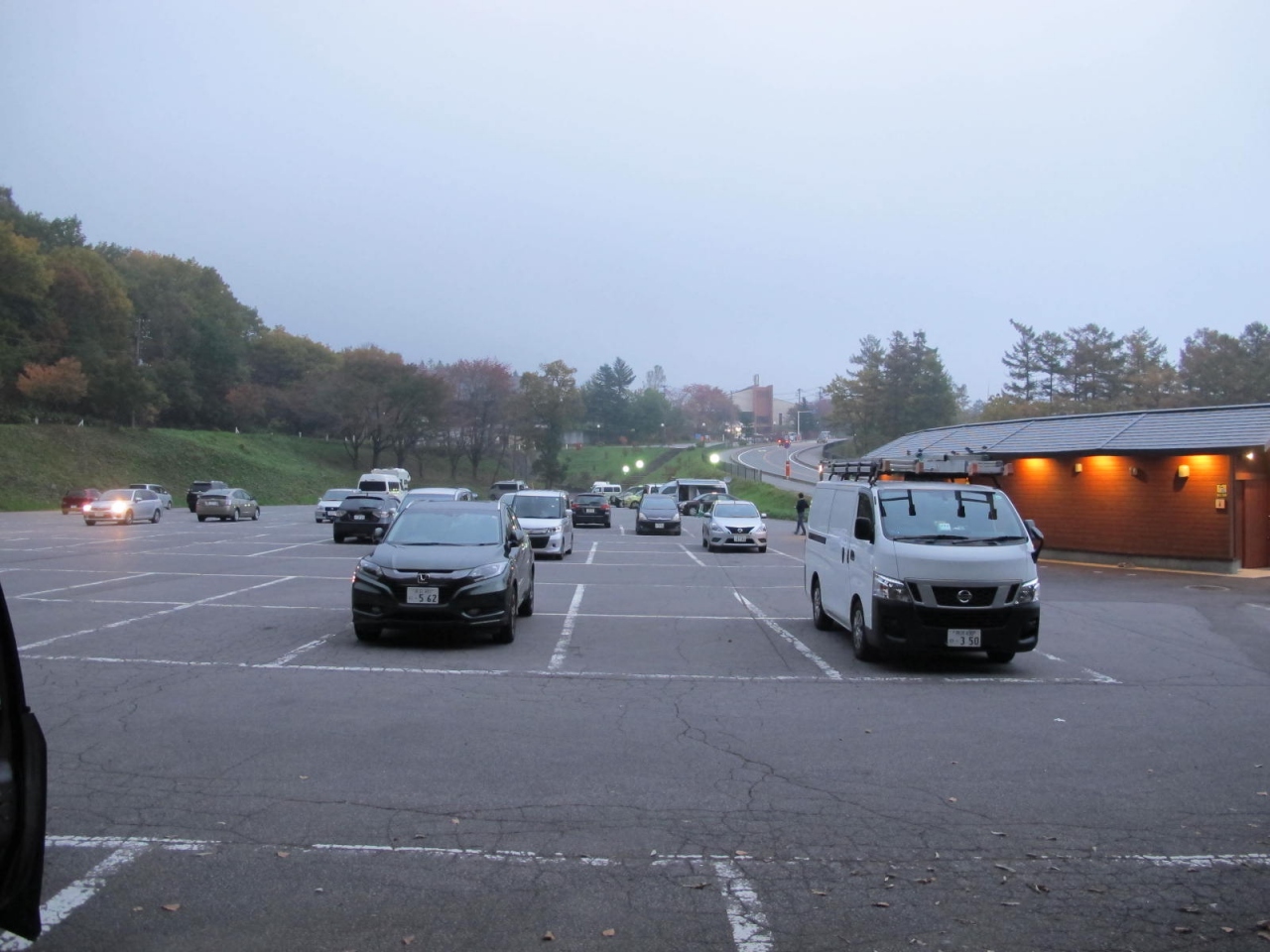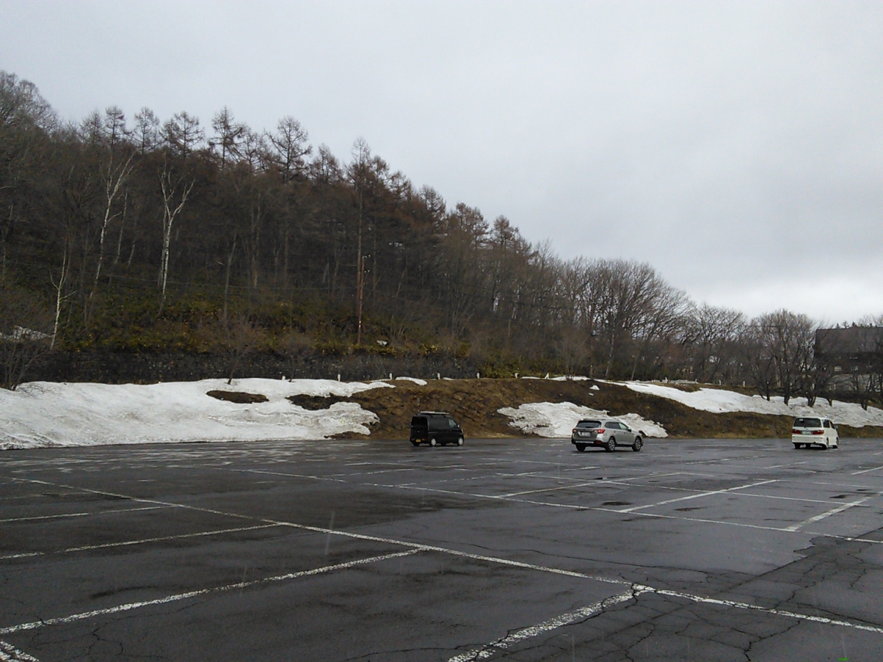 4月中旬過ぎでしたが、駐車場(標高1,236m)には残雪がありました。