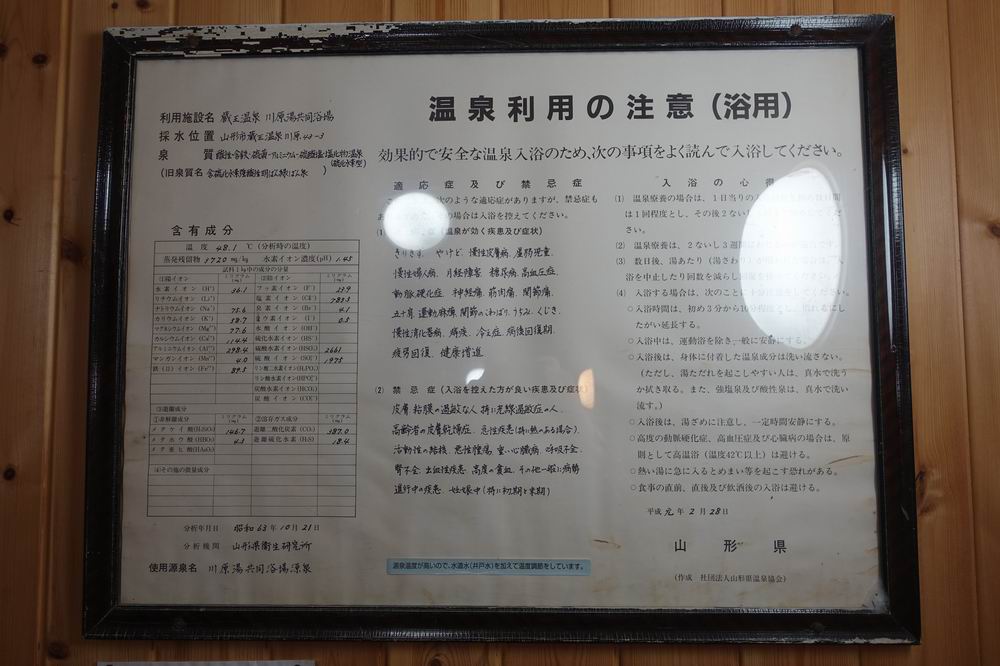 やや奥まった所にあるので、3か所ある共同浴場の中では一番分かりづらいかなと思います。料金は大人200円、子供100円。今回は蔵王温泉に宿泊したので、宿で無料券(入浴協賛券)をもらって入りました。無人なので料金箱にお金または無料券を入れて利用するしくみです。
