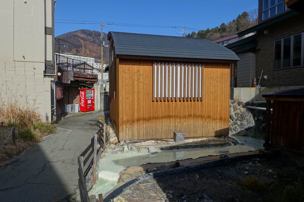 アクセスはバスターミナルから徒歩6分ほど。車で行く人は、高湯通りを上流方面へ進んだ右手に、10台くらい停められそうな無料の駐車スペースがあります。