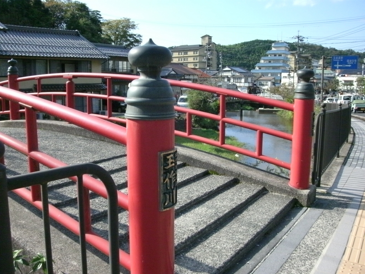 何の変哲もない小さな橋ですが、玉作温泉街を散策していると、このように観光客を飽きさせないちょっとした工夫(仕掛け)がされていて、観光に力を入れていることが判って好感が持てました。