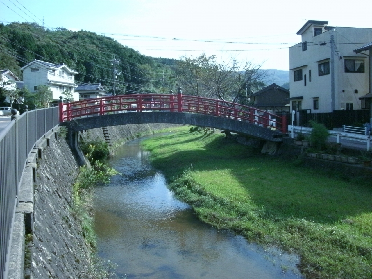 玉作湯神社の前にある紅い橋です。傍にあった説明板によると『ここから撮った写真に玉作湯神社の鳥居が入っていると恋が叶う』と書かれていました。もう恋を叶える必要がないので写真は撮りませんでしたが、若い女の子なら絶対に盛り上がる仕掛けだと思いました。