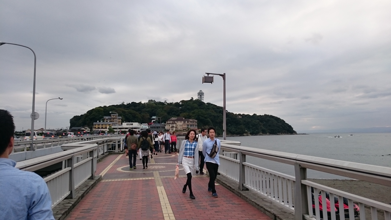 祝日の16時頃でしたが、江島神社に行く人帰る人で橋の上はスゴい人でした。
