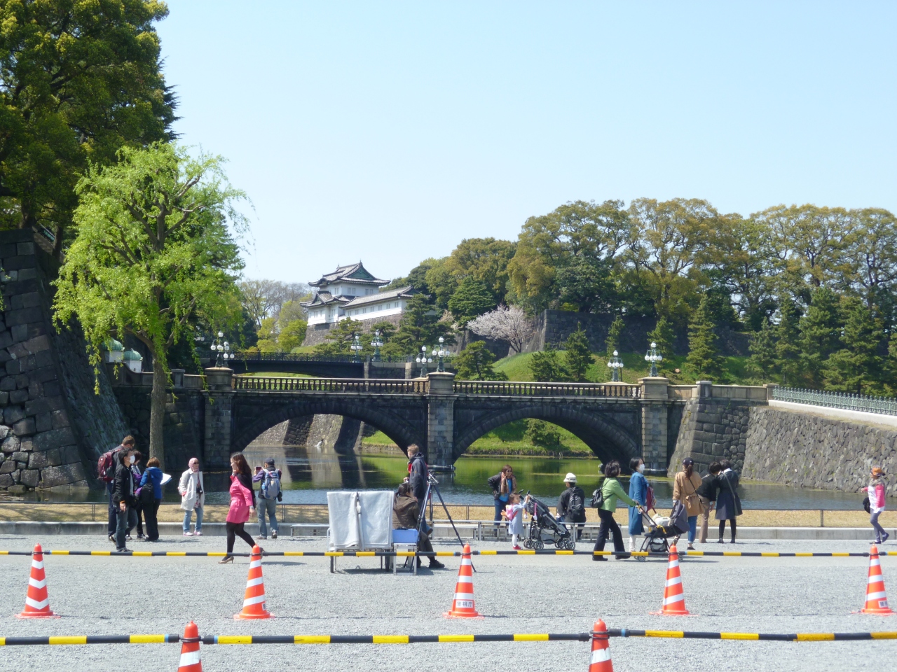 乾通り一般開放時は近くまで行けませんでしたが通常は橋のたもとまで行けて優雅な装飾の多い電灯や橋の向こう側の正門櫓、その下に直立不動で立っている皇宮警察官やその番所を見ることが出来ます。
