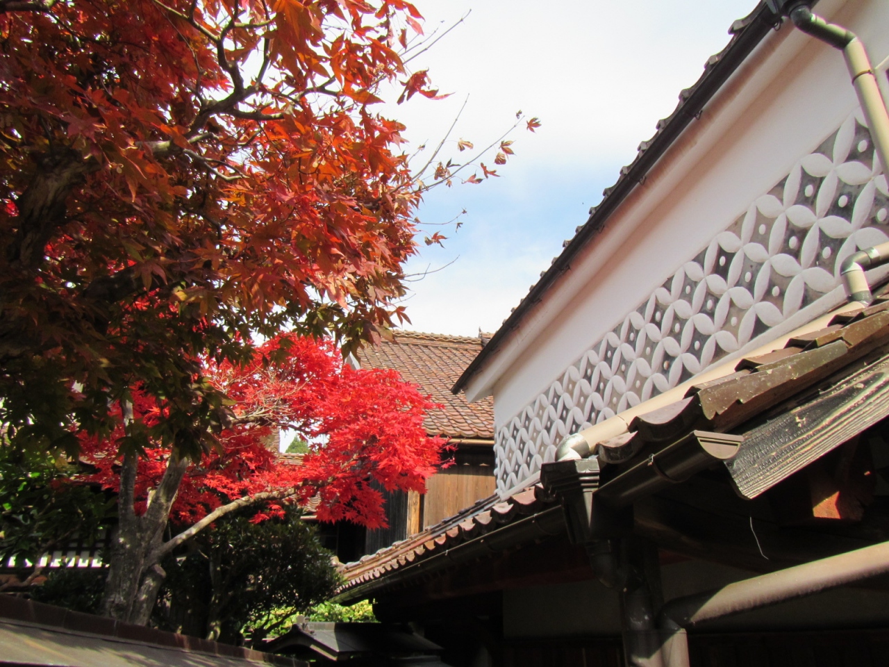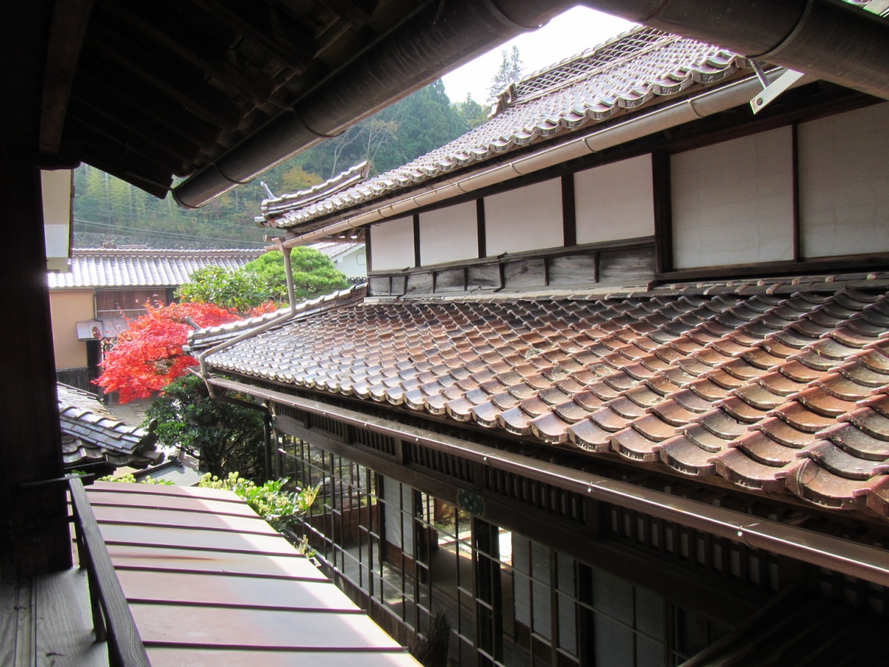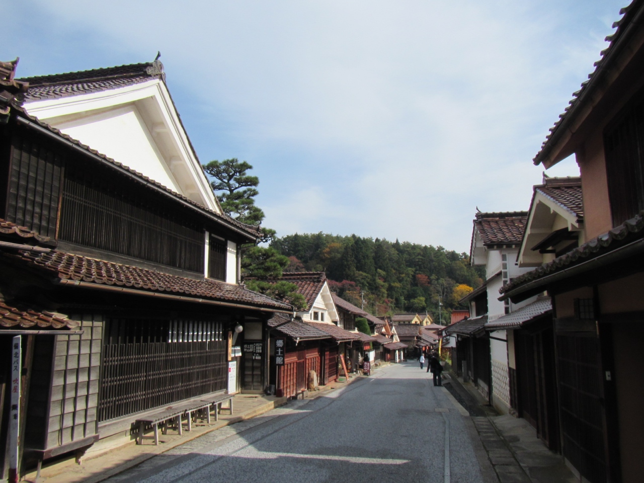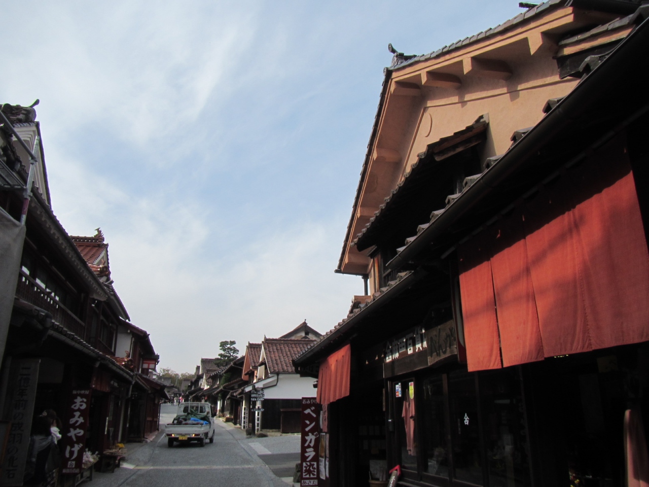 ベンガラ塗りの情感ある建物が数百mに渡り建ち並びます(下町駐車場から千枚駐車場=約700m)。
