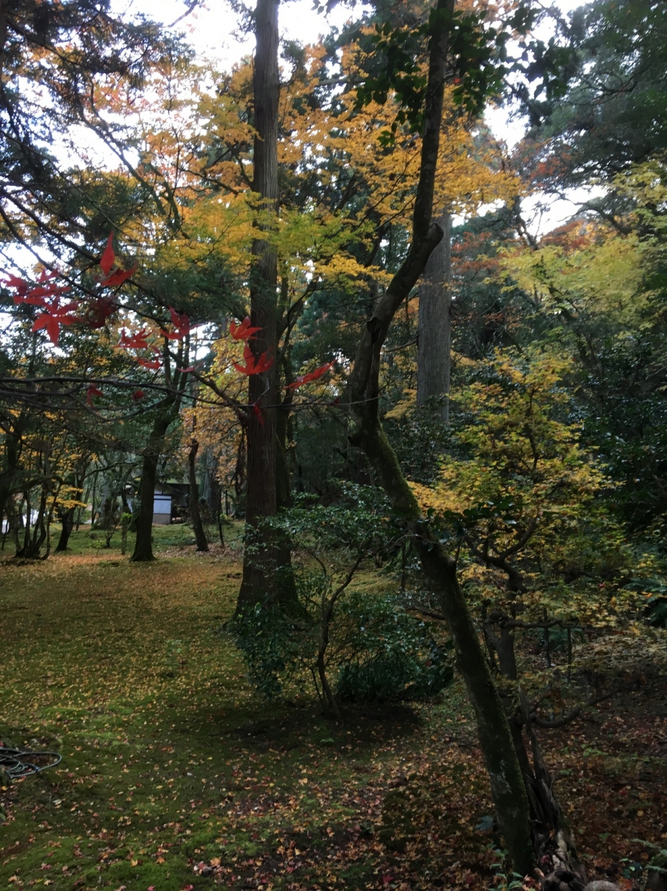 紅葉を愛でるために参拝しました。参道をまっすぐに進んで、本殿から展望台に行く前にある楓月橋から眺める奇石や下に広がる紅葉はとても美しいですが、山門から入って、鐘楼に登る階段から見る紅葉も森の中でやや深みが感じられます。通常の順路では最後の方になりますが、オススメの場所です。