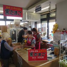箱根 大涌谷の駐車場近くにある観光茶屋です。ここの一番人気は勿論、大涌谷名物 黒卵。食べれば寿命が延びると言われる大涌谷の熱湯で茹でられた卵です。黒卵は観光センターを始め、他の場所でも売られていましたが、ここの黒卵が一番長蛇の列でした。