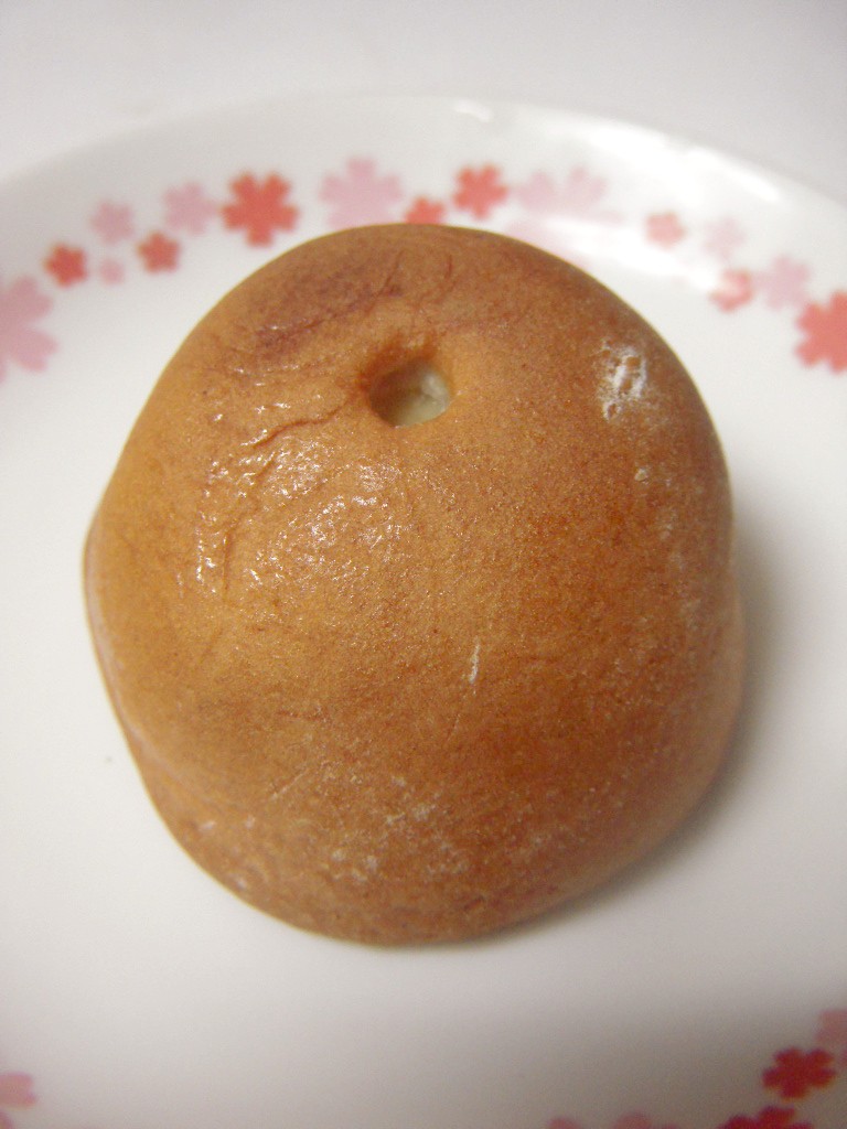 梅を白餡で包み、それを饅頭生地で包んでいる。
