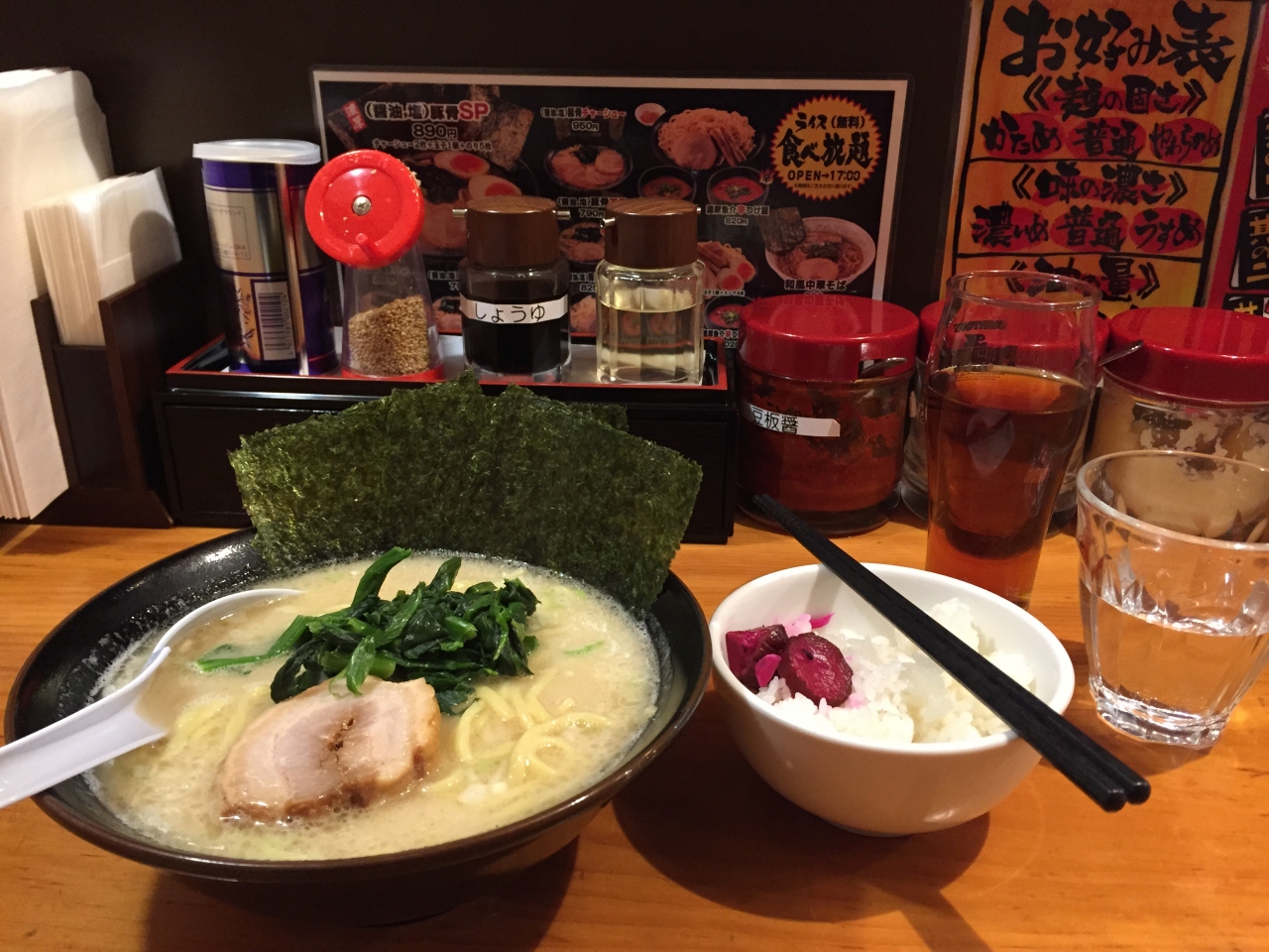 渋谷駅からすぐそばにある家系ラーメンのお店です。白ごはんがお代わり自由です。お店の片隅に炊飯器が置いてあって自分で盛ります。量を食べたい人には最高のサービスだと思います。客層は若い男性が一人か2人で無心に食べている感じです。