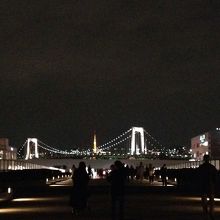 お台場地区の徒歩での移動がここを通ると楽ちん、信号がなく車の騒音もなく快適。しかも広々としていて所々にオブジェがあったり公園の様になっていたりと移動だけでなく 心地よい散歩コースでもあります。