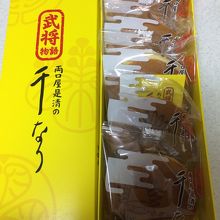 今回は、武将シリーズの千なりを頂きました。ゆるキャラの『のぶながくん、ひでよしくん、いえやすくん』がどら焼きに描かれていて、可愛いです。子供さんや戦国武将が好きな方が喜ばれるかと♪