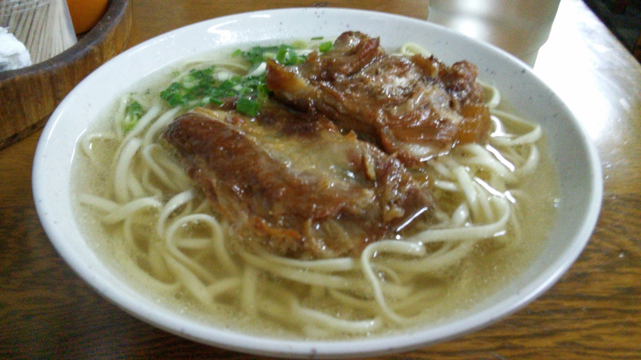 公設市場のそばにあるソーキそばのお店。田舎です。市場をぐるぐる回って見つけたので、北店か南店かよくわかりません。