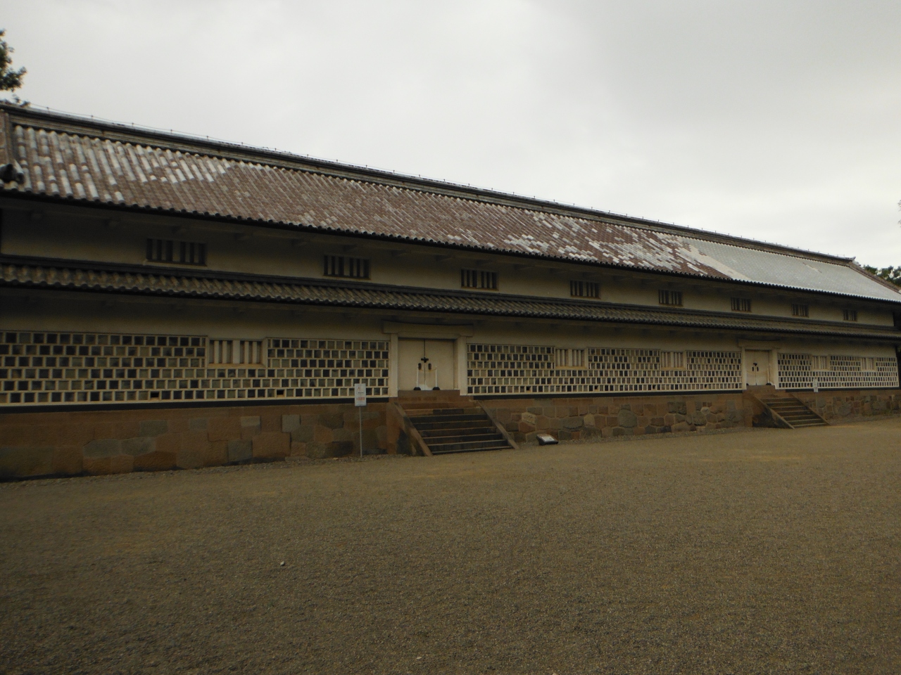 金沢城の中にある建物は1881年(明治14年)に起きた火災により焼失してしまい復元されたものが多いのですが、この三十間長屋(および石川門、鶴丸倉庫)は奇跡的に焼けずに残りました。