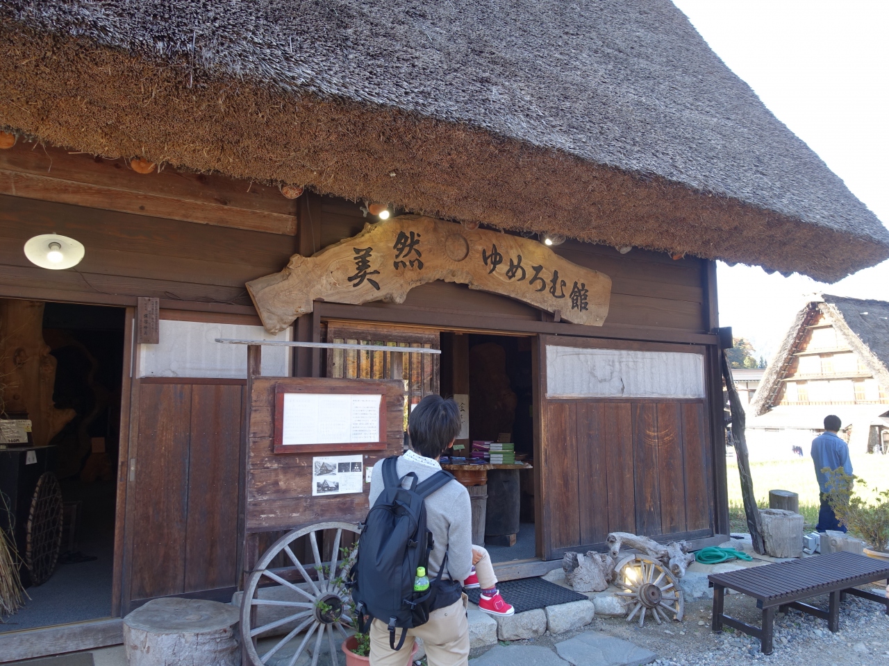 この辺りには、白川郷以外にも合掌造りの村が多くあったようですが、廃村になったところも多いようです。そこから、この建物は移築されたそうで、すっとした形が、美しい建物です。中は、見学することができ、天然木のオブジェなども見ることができます