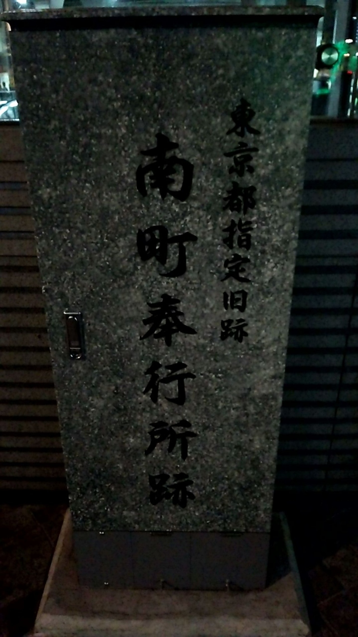 JR有楽町駅中央口を出ると、すぐのところにある地下に下りていく階段の裏側にありました。南町奉行所というと、七代将軍徳川吉宗に仕えた大岡越前がいたことでも有名ですが、現在は、発掘された若干の石組が残っているだけで、そのすぐ脇に石碑と案内板がなければ、素通りしてしまうような史跡でした。ちなみに、石組はベンチとなっているので待ち合わせ場所としては良い場所です。