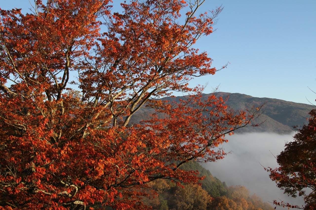 今回は紅葉&霧が見たくて、雨後の翌朝の晴れを狙って出かけてきました。朝6時頃到着。既に霧が出ていて、いい感じ。陽が明けるにつれ、紅葉の彩りも見えるように。霧に霞む紅葉を満喫できました。おまけにブロッケン現象も体験。今回はビンゴでした。