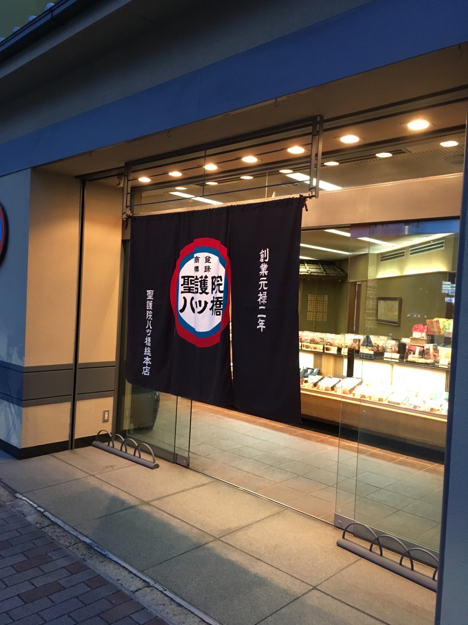 神宮丸太町駅から少し歩いた場所の交差点にある大きなお店です。いろいろな商品がありますが、季節の商品もあって、聖(ひじり)という名前の生八つ橋にはかぼちゃや栗などの商品もありました。本店格の店舗だけあって、接客も丁寧でよかったです。