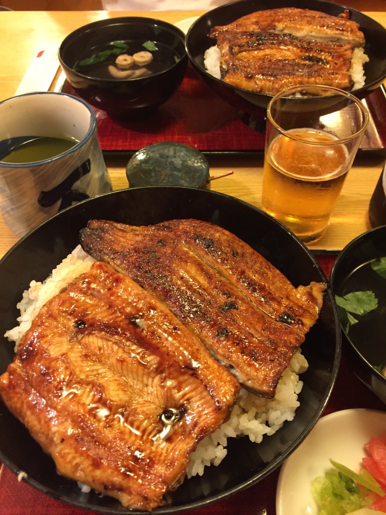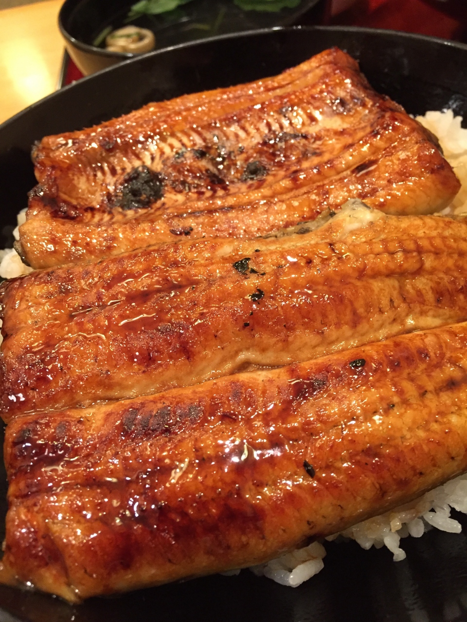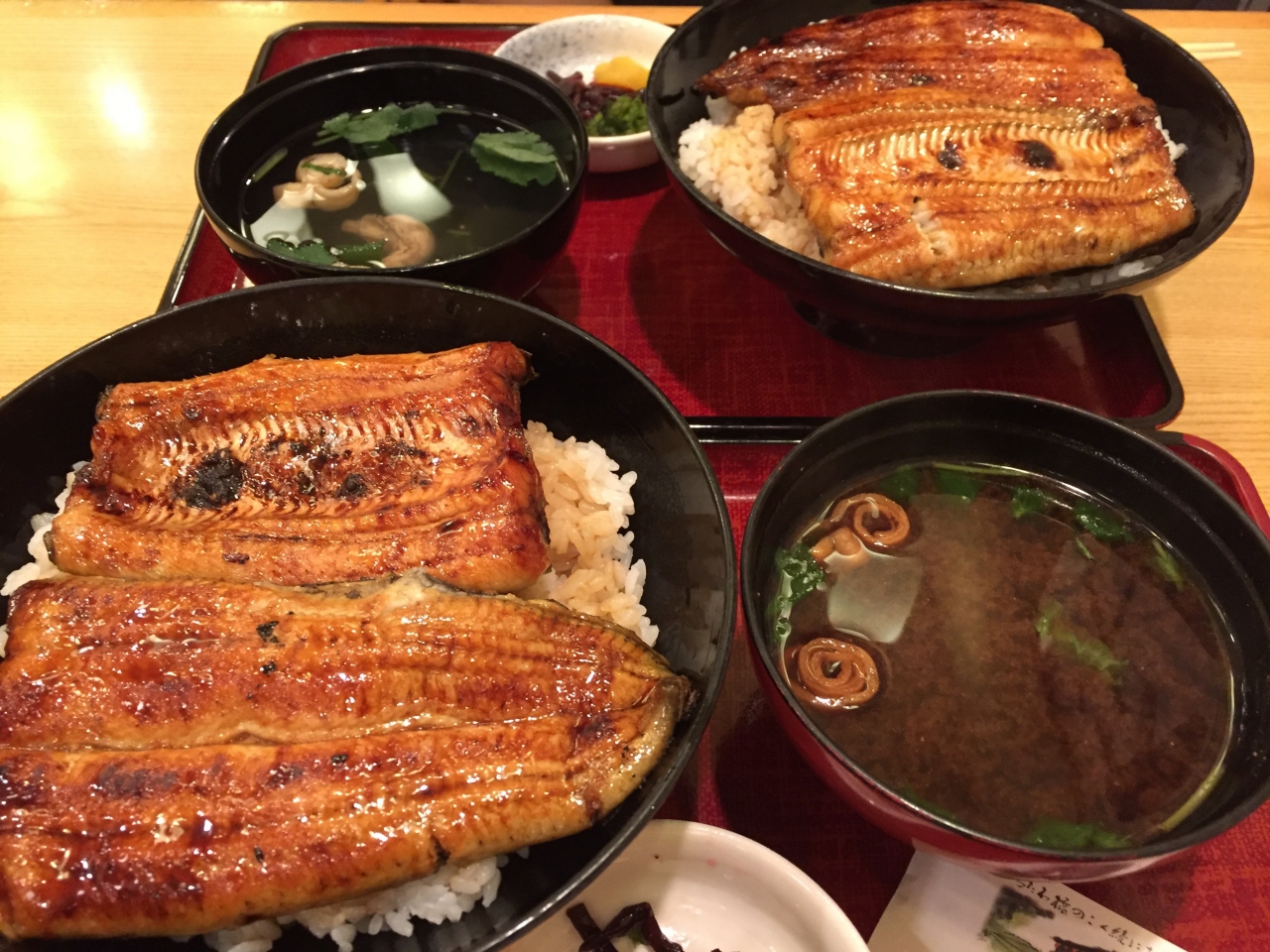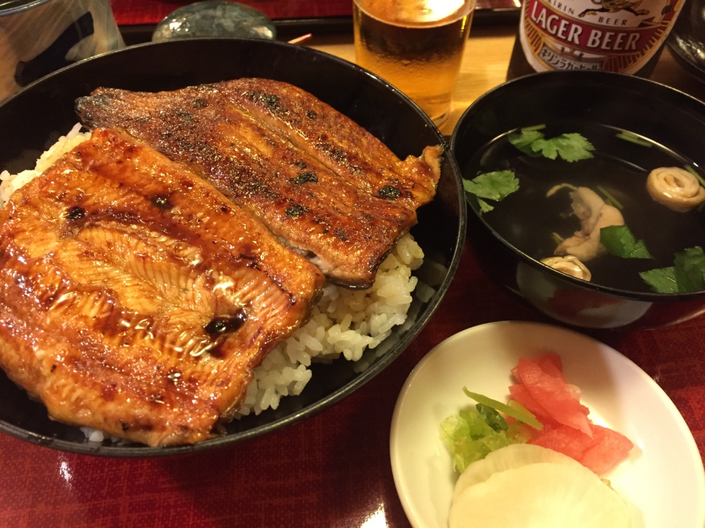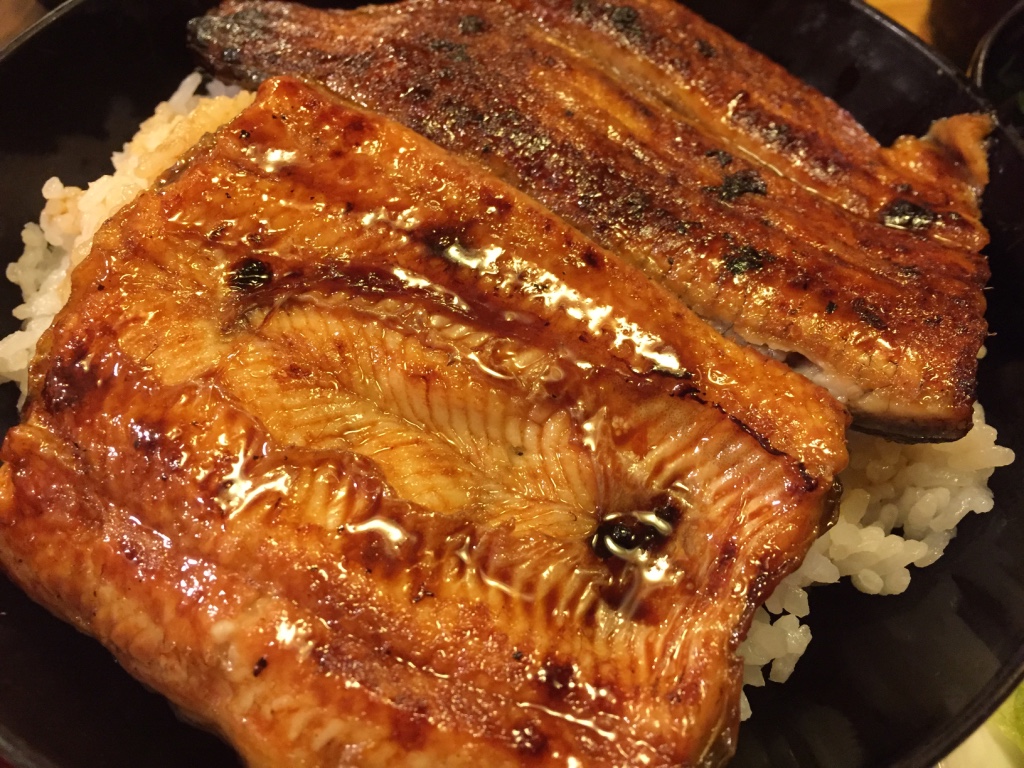 普通の鰻丼はハーフサイズ、上は一匹まるまるです。
