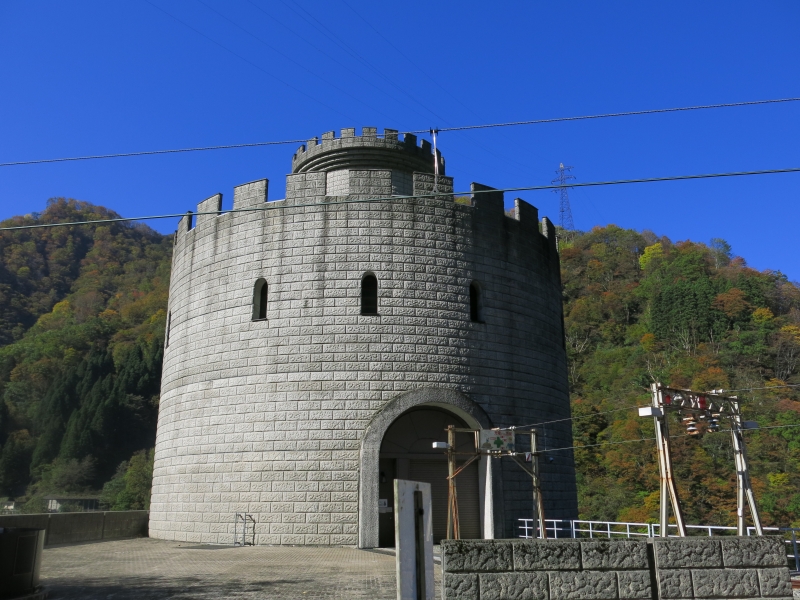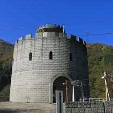 宇奈月ダムを過ぎて間もなく、古城のような円筒形の建物が現れます。