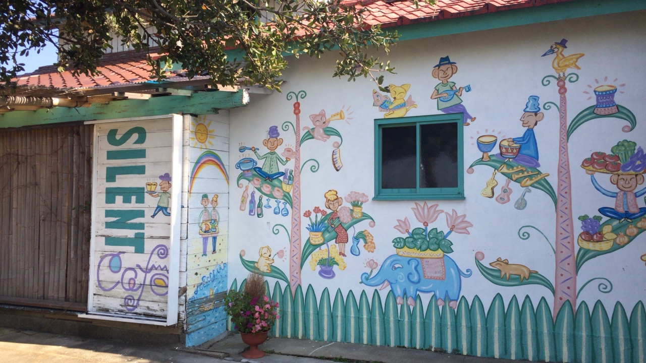 三豊市詫間町の粟島の西浜という海岸沿いにありました。古い民家を改装したカフェで靴を脱いで入ると大きなテーブルがありゆっくり出来ます。外にはピザ釜がありピザも頂けます。目の前がすぐ海岸で時間がゆっくり流れるようなところでした。