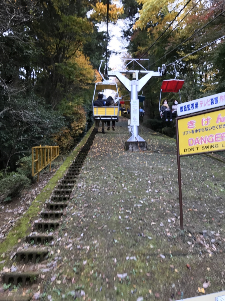 高尾山口に着くと、ケーブルカー90分待ちの表示を見たので行きはケーブルカーの乗車をあきらめて50分待ちのリフトにしました。高尾山はかなり寒く、凍えながらリフトに乗ってました。山々から少しは紅葉も見れましたがとにかく寒いの一点。