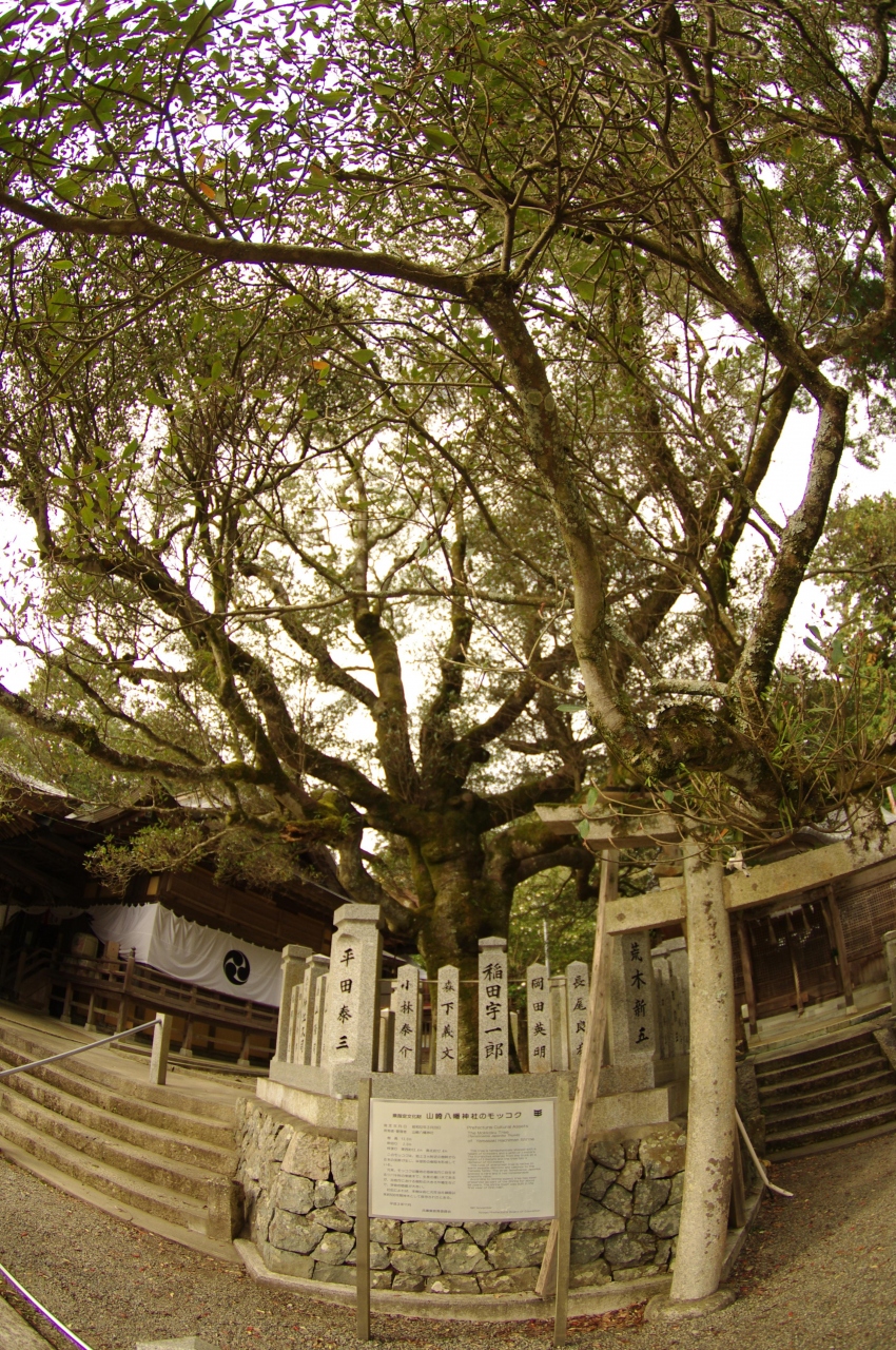 おおきなモッコクの木がご神木らしく、樹齢500年とのこと。いまでも生き生きと枝葉を伸ばしていて力強いです。
