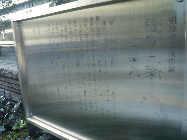 案内によると一葉はかつてこの近くにあった東京府構内の武家長屋で生まれたそうで、興味があれば見ていってはいかがでしょう。