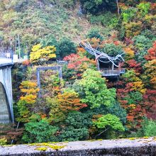 温泉街や黒部川を包む峡谷美が楽しめるポイントで、斬新なオブジェはスペインの建築家ミラーレス氏によるものだそうです。