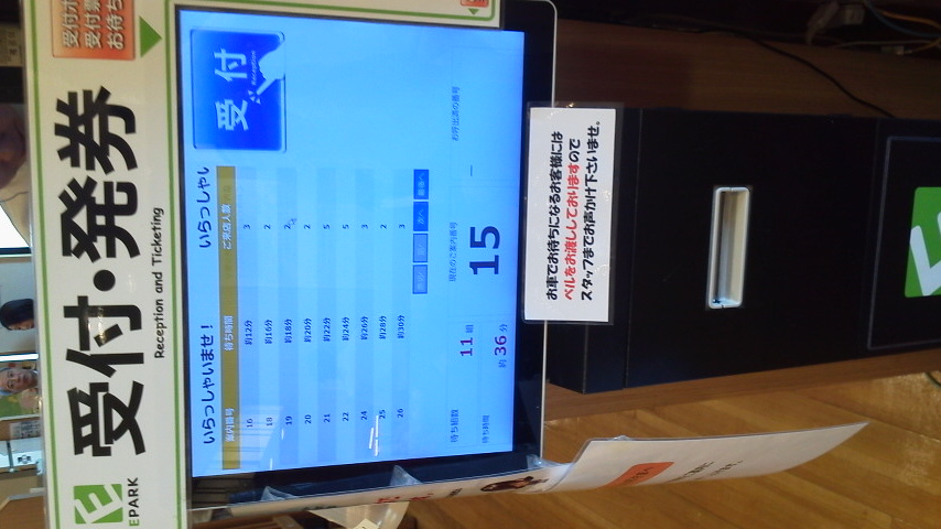 入口には無人の受付発券機があり、おおよその待ち時間が分かります。少々残念だったのが、