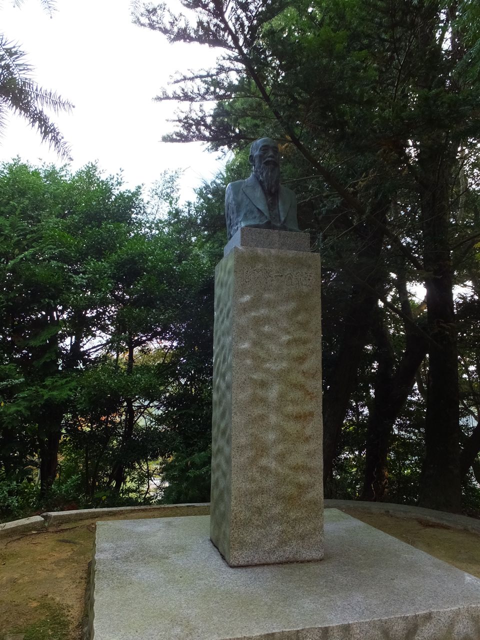 その奥、さらに登るとちょっと珍しい像が在りました。森永製菓の創始者の胸像です。ここ伊万里の出身なのだそうです。