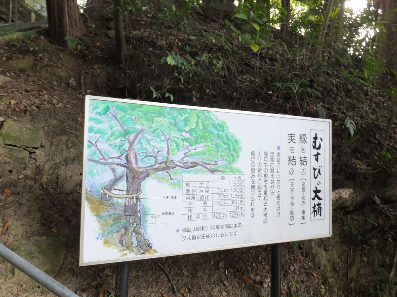 なお、楼門の隣には「結びの大楠」という巨木があり、2本のクスノキがしめ縄で結ばれています。「実を結ぶ」「縁を結ぶ」ということでおめでたい樹です。
