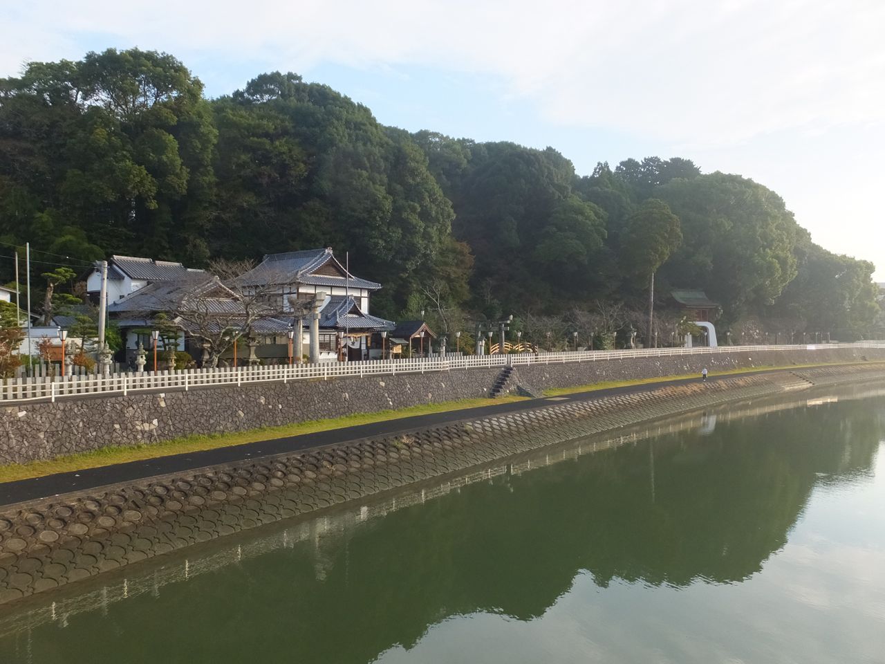 川沿いにちょっと中華風な楼門があり、そこからちょっと登ったところに平な境内と本殿があります。