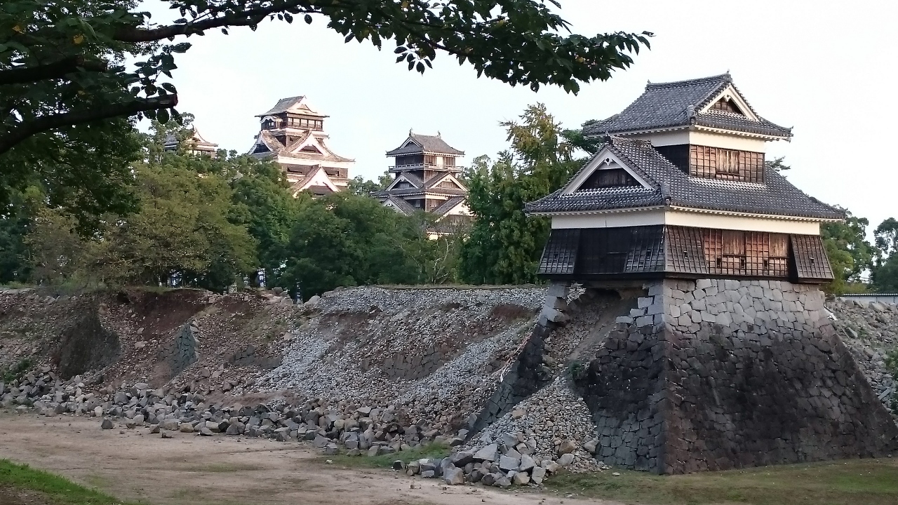 向かう途中の城の周辺にも、地震の爪痕が生々しく残っていました。