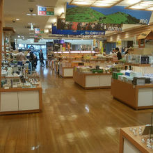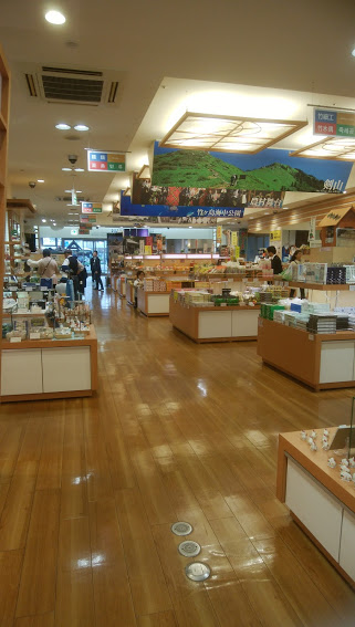 徳島のシンボルである眉山へのぼるロープウェーの山麓駅がある阿波おどり会館の1階フロアを大きく占めて営業しているのがこちらのお店です。徳島県内の名産品やお土産品が並べられており、広い面積を使用しているのでゆったりと見ることが出来るように陳列されています。店舗の一番奥にはイートインのコーナーとちょっとしたテーブルと椅子があって、休憩することができるようになっていました。この館が阿波踊りホールだったり、阿波踊りミュージアム、眉山ロープウェーなどもあったりするので、そこを訪れた際に立ち寄る感じのところだと思います。