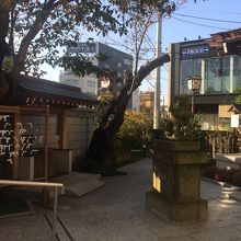 駒込駅前の道路を渡り正面にあり駒込橋の横にある小さな神社で境内も狭いです。社務所もあり絵馬も販売していました。境内には絵馬やおみくじが結んであり訪問客の多さがうかがえます。隣接してビルや住宅街となっていて都会の神社という感じでした。