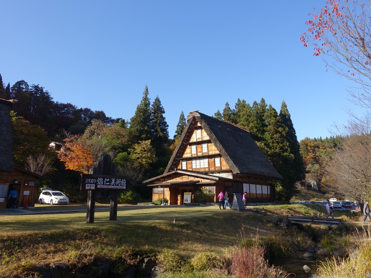 「合掌造り 焔仁美術館」は、白川郷のバスターミナルの近くにあります。ここから「庄川」に架かる出会い橋を渡ると合掌造りの集落にたどり着きます。こちらの美術館は建築物としても美しく、周囲の景観と素晴らしくマッチしています。館内も見ごたえがあるので、集落の観光を終えてから時間に余裕があれば立ち寄るのが良いと思います。