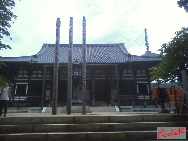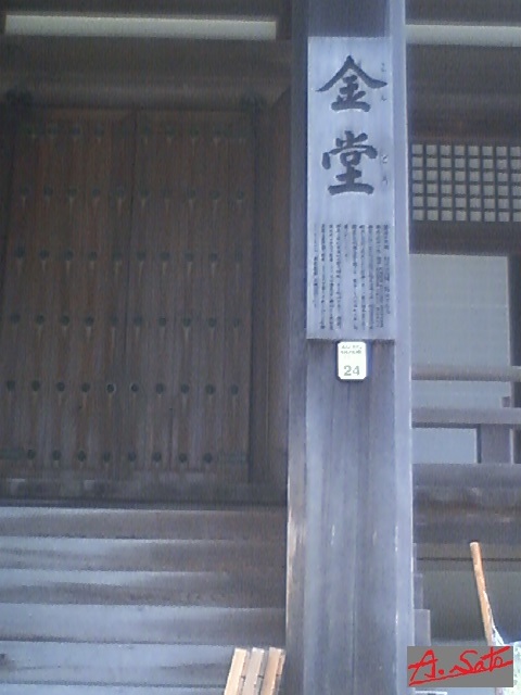 中門をくぐると正面にあります。何気に渋い建物です、禅宗で言う「法堂」でしょうか?中門が新しく、朱色が鮮やかなので、過ぎるとすぐに表れる「金堂」の渋さが光ります。左側には「三鈷の松」があり、30分くらい落ち葉を探し、二つ拾いました。一緒に探した年配女性は中々見つかっていませんでしたが見つめたそうです。良かったですね。そして、右方向に歩くと建物の間から・・・「根本大塔」です。