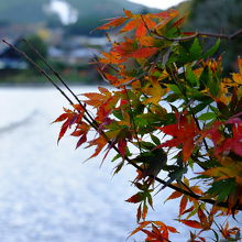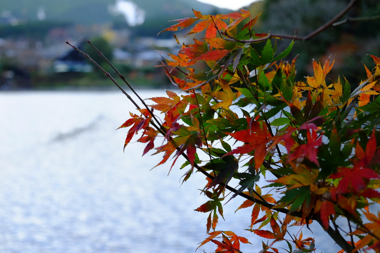 丁度紅葉のシーズンだったので、湖の青・紅葉の朱・由布岳の金のコントラストがとても鮮やかでした。