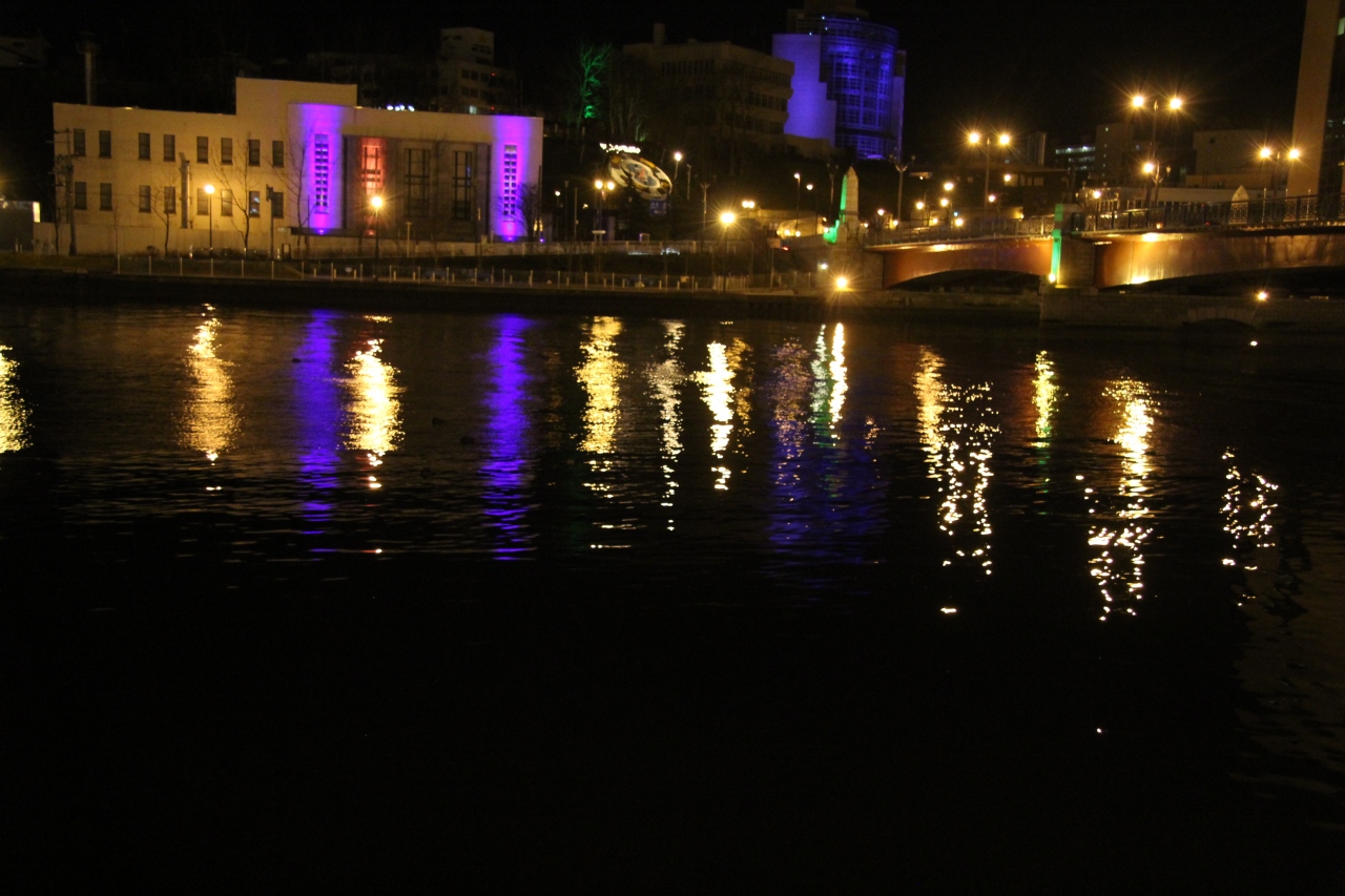 川沿いに並ぶ街灯が夜は幻想的で綺麗です。また、幣舞橋や川沿いの建物がライトアップされますので川面に映る姿も綺麗です。夜景も見ながら遊歩道を散策するのはお勧めです。
