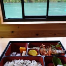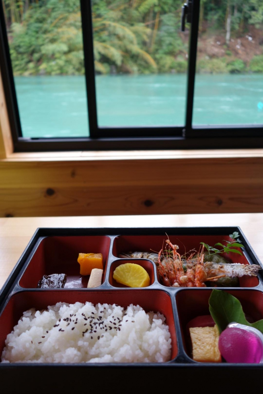 遊覧船の中で頼んであったお弁当を食べました。ちょっとお高めですが、四万十川で取れた鮎や川エビ、ウナギや海苔を食べることができました。