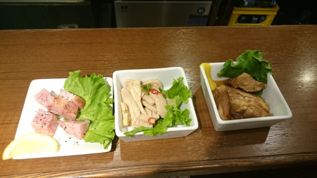 注文してお支払い、そしてお料理やお酒が出てくる、そんな流れです。どれもお安い。