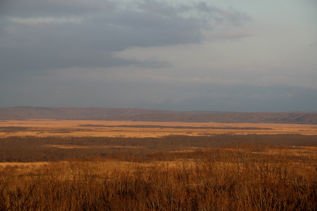 釧路湿原の西側にある北斗展望台から広大な釧路湿原を見学しました。11月中旬に行きましたので、ポスターなどで見かける緑の湿原ではなく草紅葉の様な湿原でした。丁度夕暮れ時だったので、夕日に染まったようでとても綺麗でした。