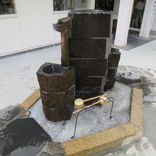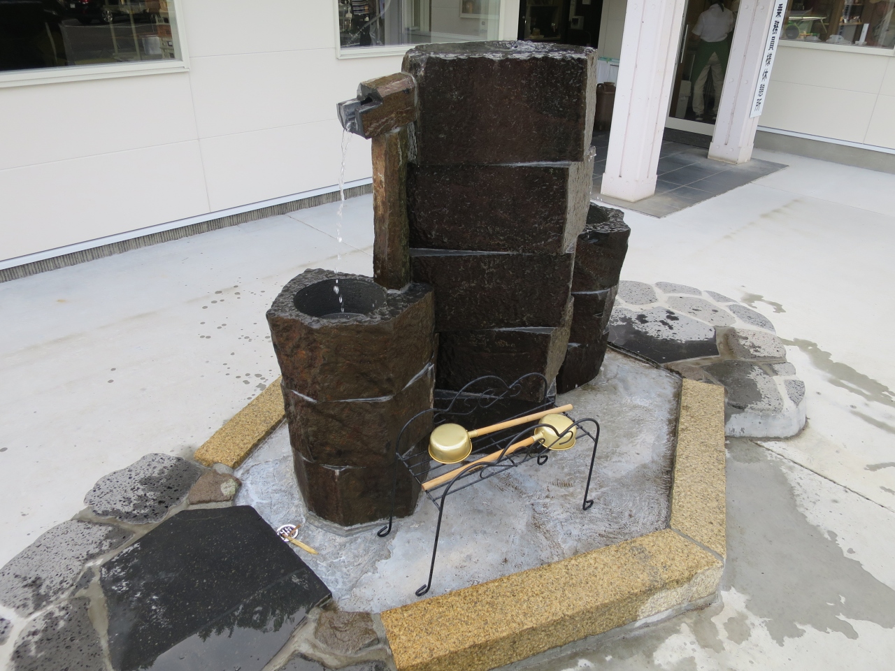 店の目の前で、柿田川の湧水を無料で飲むことができます。