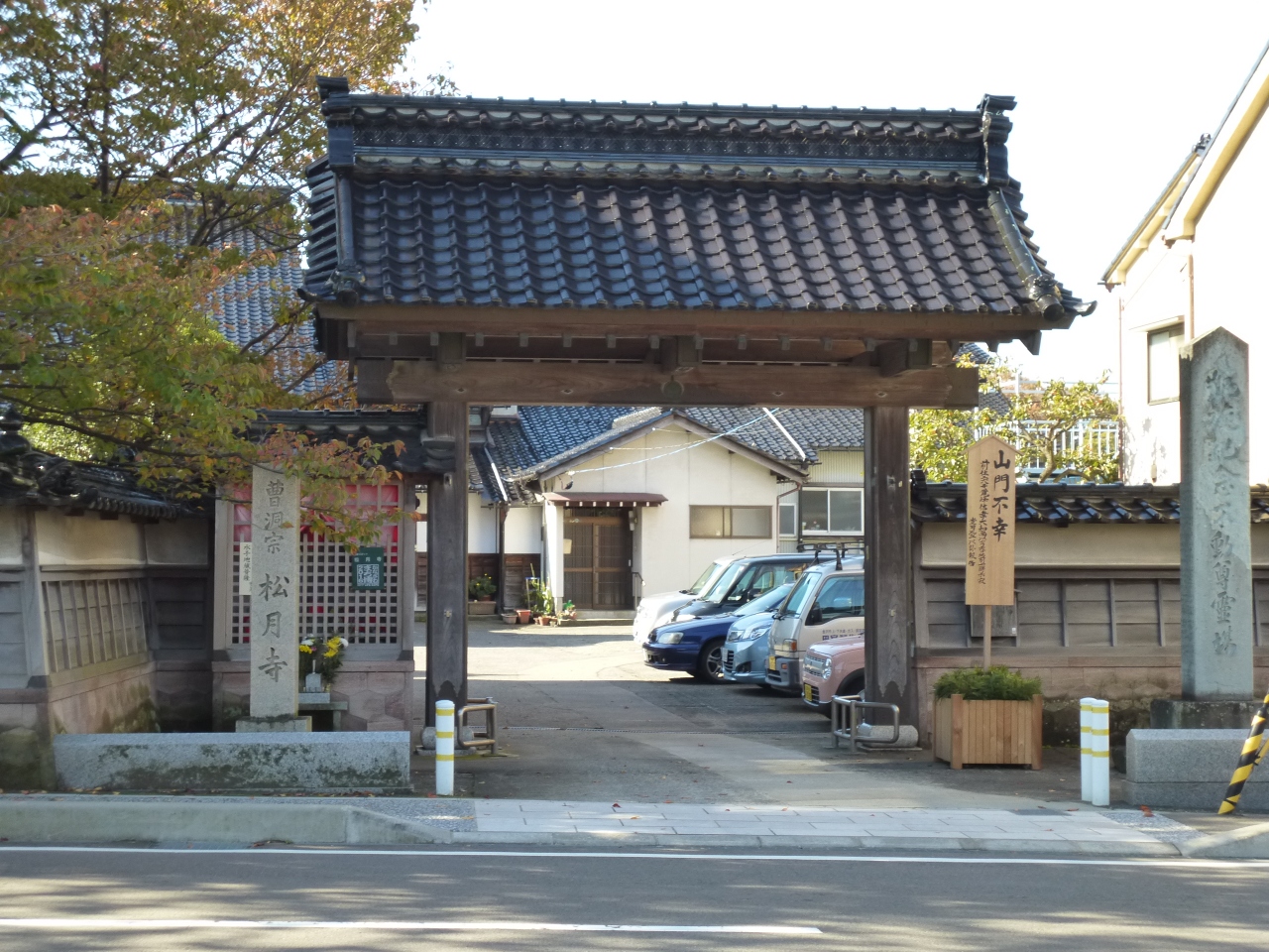金沢市の「寺町寺院群」の一画、寺町通りに面して位置する曹洞宗寺院の「松月寺」は、「大桜」「御殿桜」などと称される桜の大木が有名なお寺です。